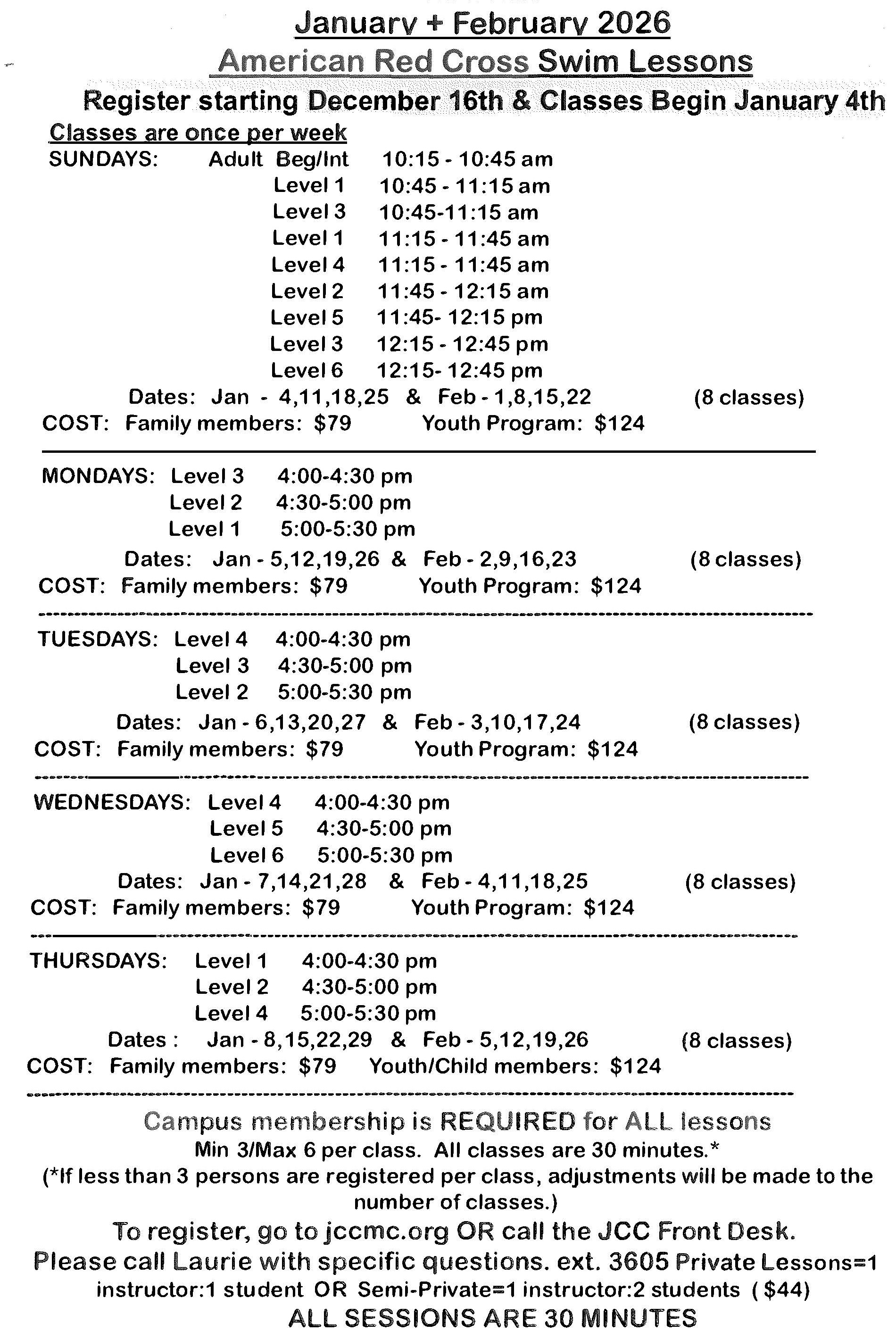 Laurie Post, Director of Operations, Health & Wellness or the JCC Front Desk. 732-494-3232 ext.3605
