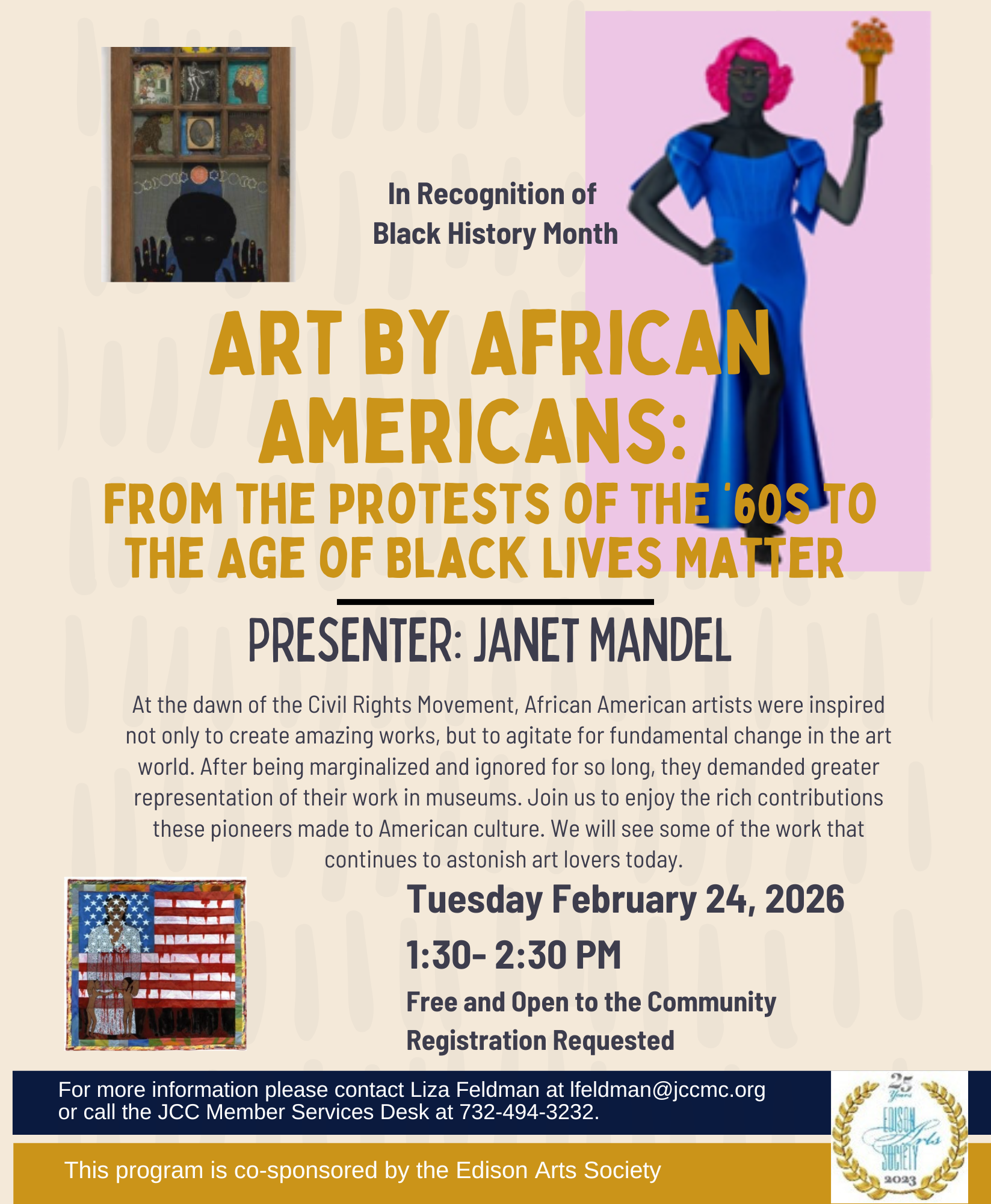 TO REGISTER: Call the JCC Front Desk at 732-494-3232 or email Liza Feldman at lfeldman@jccmc.org. To register online please click HERE.