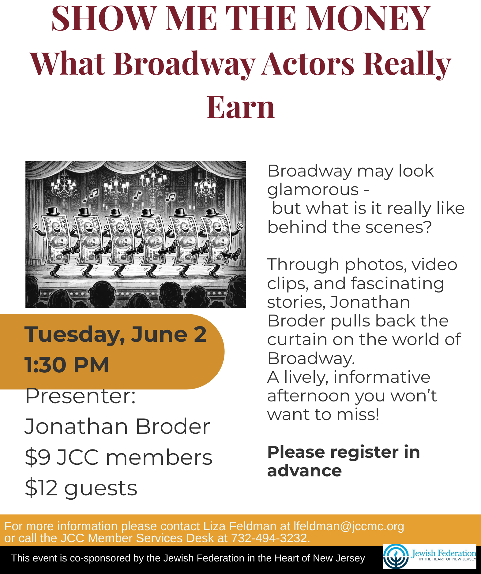TO REGISTER: Call the JCC Front Desk at 732-494-3232 or email Liza Feldman at lfeldman@jccmc.org. To register online please click HERE. Sorry, no refunds.
