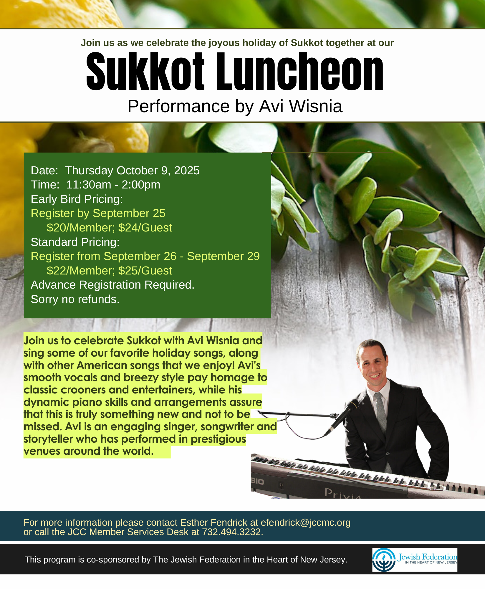 The program includes lunch, dessert, musical entertainment and fun for the young at heart!