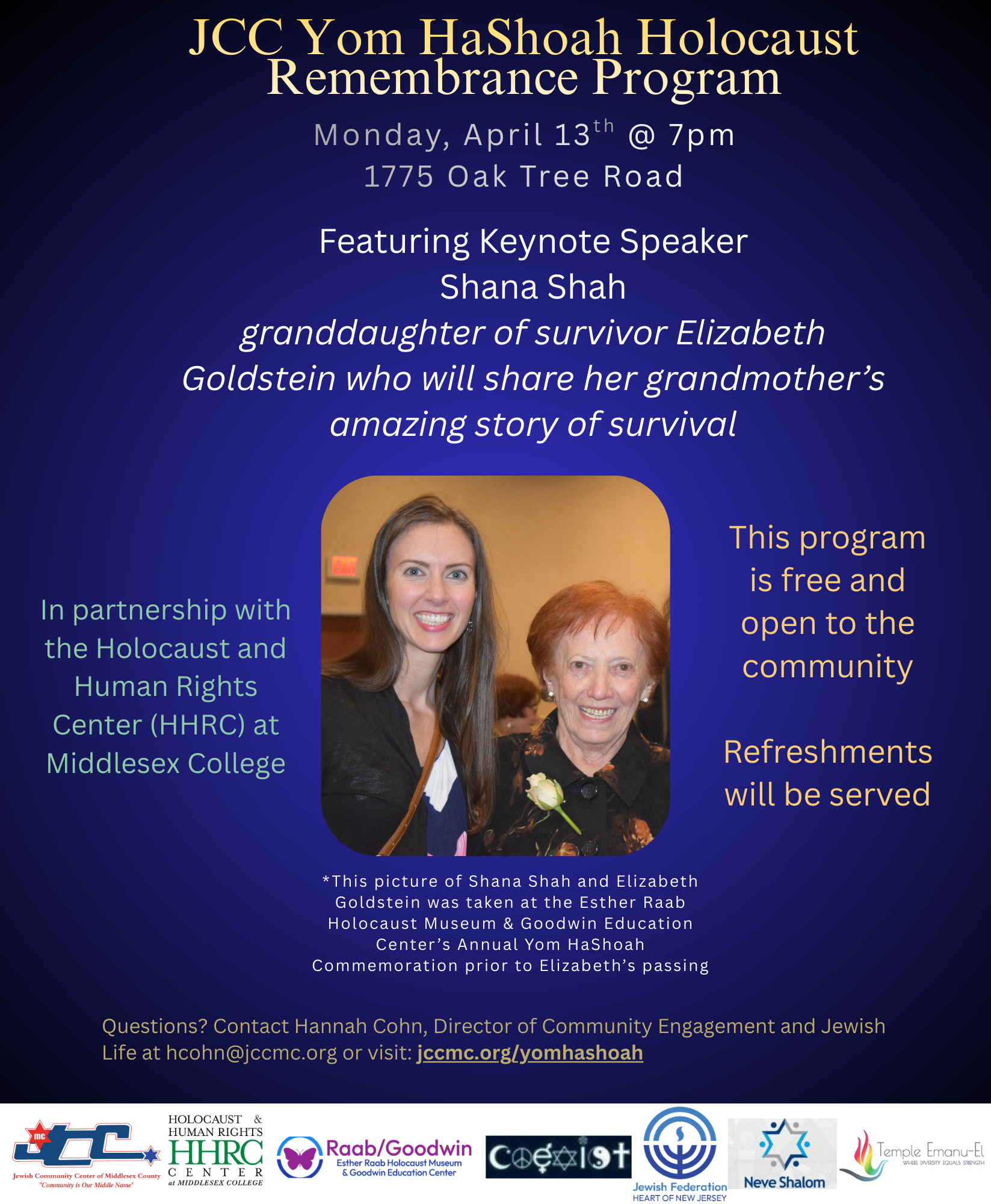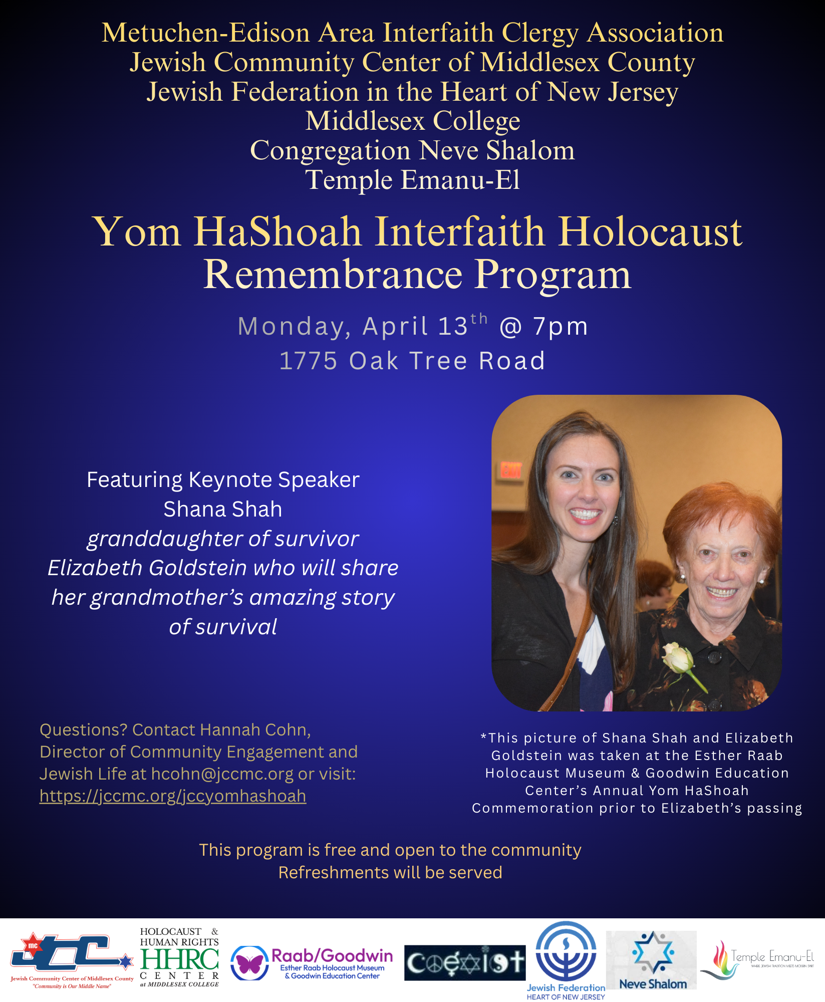 Featuring Keynote Speaker: Shana Shah, granddaughter of survivor Elizabeth Goldstein who will share her grandmother’s amazing story of survival
